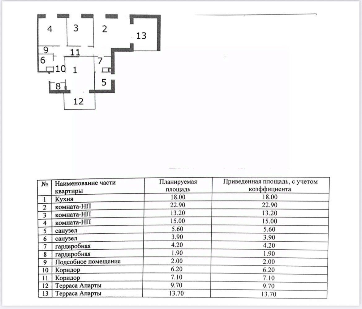 Общая площадь составляет 123,4 кв.м, площадь террас: первая — 13,7 кв.м , вторая — 9,7 кв.м (по факту террасы значительно больше, так как часть террас отведена под озеленение от управляющей компании).