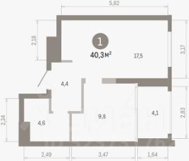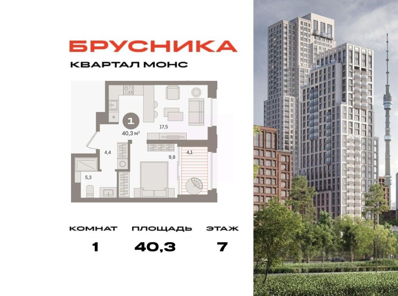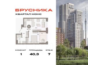 Квартира с кухней-гостиной и одной спальней в квартале "МОНС". Особенности планировки: тёплая лоджия, предчистовая отделка.