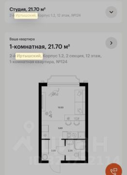 Продается студия с панорамными окнами общей площадью 21,7 метров с удобной планировкой в новом строящемся Жилом Комплексе 2-й Иртышский корпус 1.2.