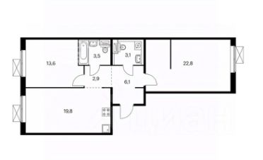Предлагаем к продаже просторную, светлую Евро трехкомнатную квартиру-распашонку, площадью 71.4 м² в современном жилом комплексе "Середневский Лес".