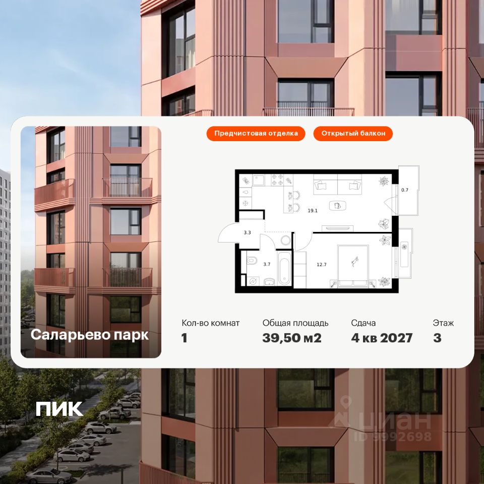 Продаётся 1-комн. квартира площадью 39,5 кв.м на 3 этаже 14 этажного дома (Корпус 57.5, Секция 5) проекта ПИК Саларьево парк. Светлый просторный подъезд на уровне земли, функциональная планировка, большие окна, предчистовая отделка.