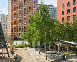 Все корпуса в квартале гармонично сочетаются, образуя единую городскую среду. Между собой их объединяет невысокая этажность и натуральная цветовая гамма. Здесь приятно гулять и проводить время на улице всей семьёй.