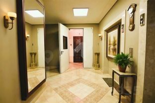 Все окна выходят в тихий закрытый двор. Планировочное решение включает изолированные помещения: просторная кухня. столовая - гостиная 2 спальни с собственной гардеробной, вторую комнату 17 кв. м для использования в качестве кабинета или детской, два санузла и уникальный объект — финскую сауну 2.7 кв. м с джакузи.