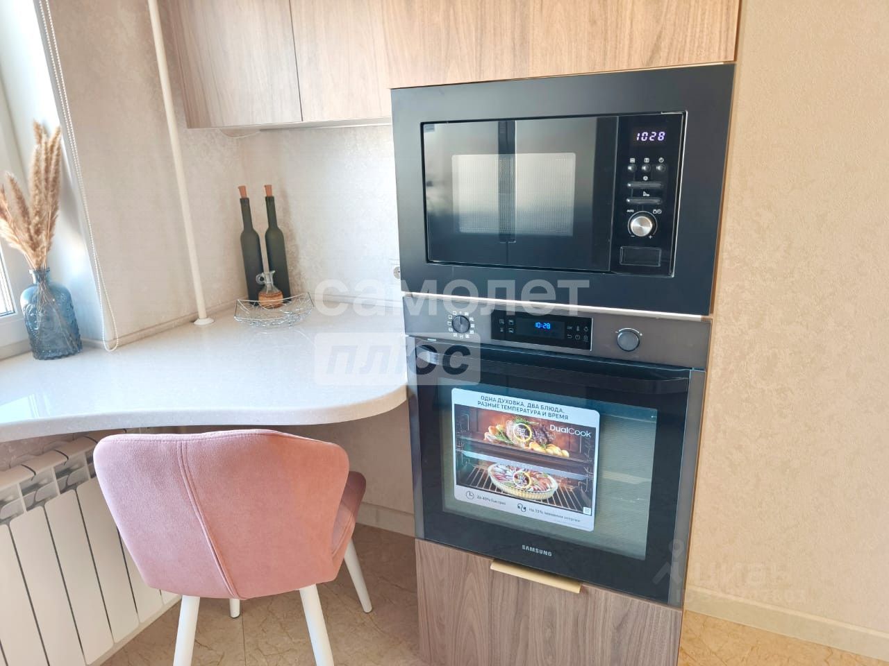 Функциональная кухня 8.7 м² с новой качественной встроенной техникой и большим холодильником (посудомоечная машина, варочная панель, духовой шкаф, свч, вытяжка) идеальное место для семейного отдыха и кулинарных экспериментов.
