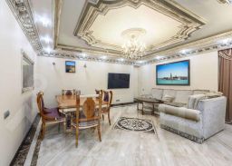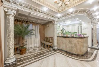 В отделке квартиры использованы дорогостоящие решения, такие как мраморная и паркетная мозаика, лепнина по индивидуальному заказу, люстры Swarovski и др., выполнен дизайнерский ремонт, который создает атмосферу роскоши и уюта. В вашем распоряжении 3 спальни и 4 совмещенных санузла. Для вашего комфорта в доме предусмотрены 2 грузовых и 2 пассажирских лифта.