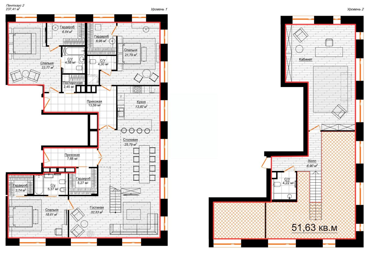 Продается пентхаус в сданном доме (Художественный), срок сдачи: IV-кв. 2021, общей площадью 237.4 кв.м., на 5 этаже. Окруженный богатой историей, клубный дом "Долгоруковская, 25" состоит из двух корпусов: "Музыкальный" и "Художественный", объединенных единым подземным пространством.