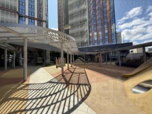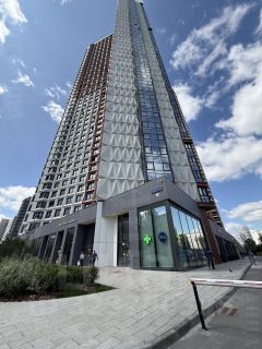 Монолитный, 47-этажный, 2024 года постройки. В подъезде два пассажирских лифта и один грузовой.