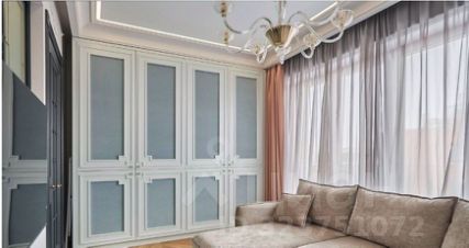 Планировка: гостиная-столовая совмещена с кухней, спальная комната с вместительной гардеробной, кабинет.