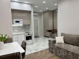 Квартира полностью готова для проживания и оснащена всем необходимым: элитный ремонт с многоуровневым освещением, тёплыми полами, кондиционерами, а также дорогой мебелью и техникой.С лоджии открывается великолепный вид, что позволяет наслаждаться прекрасными закатами. Во дворе расположена современная детская площадка с подогреваемыми скамейками и экзотическими растениями.