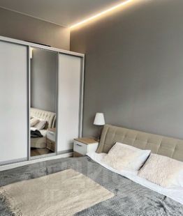 О квартире: полностью укомплектованная кухня ; гостиная с телевизором и кондиционером, спальня с кондиционером; гардеробная; санузел со стиральной машиной и вытяжным вентилятором. Главная прелесть квартиры - панорамные окна!