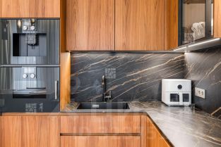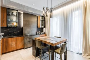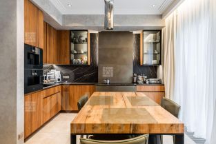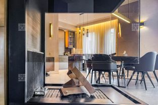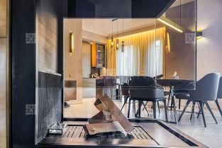 В квартире СОГЛАСОВАН настоящий дровяной камин Virtu, отделка выполнена исключительно натуральными материалами, встроенная кухня от итальянского бренда Modulnova, оборудована техникой Gaggtnau и Kuppersbusch,