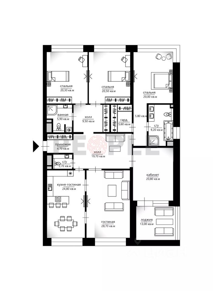 Квартира 218 м² с лоджией и видами на 3 стороны | ЖК "Река", Раменки, 5 этаж