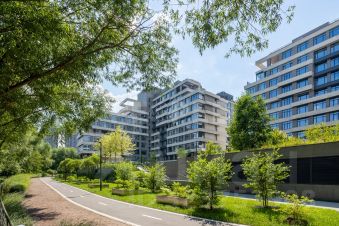 — В комплексе: закрытая охраняемая территория, подземный паркинг с зарядками и мойкой колес, ландшафтный двор, детские площадки, собственный выход в парк и к реке