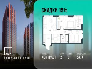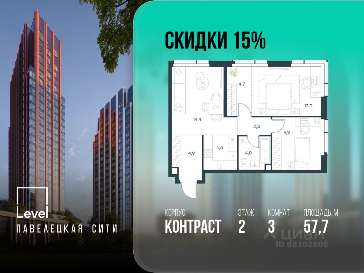 В Даниловском районе столицы (ЮАО) продаётся 3-комнатная квартира площадью 57.70 кв.м без отделки. Квартира расположена на 2 этаже 27-этажного корпуса 'Горизонт' в жилом комплексе бизнес-класса Павелецкая Сити. Высота потолков 3.00м.