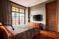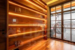 Планировка: гостиная с выделенной зоной кухни, мастер-спальня с ванной комнатой, детская с ванной комнатой, гостевая спальня (комната для караоке с потрясающей звукоизоляцией), гостевой санузел, гардеробная при входе, кладовая. Есть благоустроенная терраса (15 кв. м), оборудованная тепловой пушкой и уютным ротанговым гарнитуром, и 5 балконов.