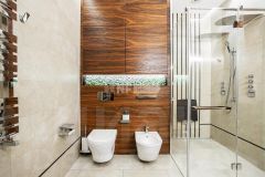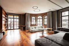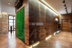 Выполнена новая отделка в стиле эко-шик с использованием американского ореха, настоящего мха, слэба и древнего аммонита. Гостиная оборудована био-камином, встроенная кухня — системой сенсорного открытия шкафов. Часть предметов мебели и интерьера выполнены на заказ по эскизам дизайнера. Освещение — диодный свет CentrSvet, декоративные светильники Serip, Flos, Artemide. Система "умный дом" позволяет управлять устройствами в доме через мобильное приложение. Система управления освещением — Lutron.