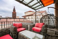 Из панорамных окон открывается вид на черепичные крыши "Итальянского Квартала", церковь Николая Чудотворца.