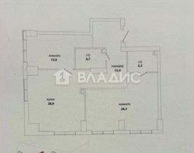Квартира отличается удобной планировкой с изолированными комнатами и двумя санузлами (раздельным и совмещённым). Общая площадь квартиры — 98,5 кв. м, из которых 44,3 кв. м приходится на жилую площадь. Просторная кухня площадью 28,9 кв. м станет местом для семейных ужинов и дружеских посиделок.
