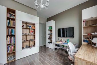 При входе гардеробная. Эргономично оборудована детская комната.