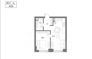 * Планировка: Функциональная евро-двушка (44.9 м²). Просторная кухня-гостиная (17.1 м²) и мастер-спальня (18.6 м²). Идеально для жизни и для сдачи в аренду.