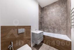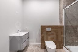 В санузле установлена вся сантехника, тумбочка под раковину, оборудован теплый пол.