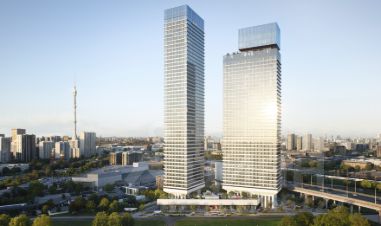 Вход во все три здания проходит через стилобат, служащий просторным лобби с потолками высотой до 6 м, в котором размещены колясочные и лапомойки, гостевые санузлы, стойки ресепшен и постаматы. Второй этаж зданий занимает общественное пространство, оформленное в виде остекленного променада. Красная лестница - истинный арт-объект, ведущий на террасу с видом на внутренний двор.