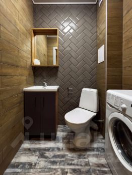 совмещенный санузел с душевой кабинкой, раковиной и стиральной машинкой