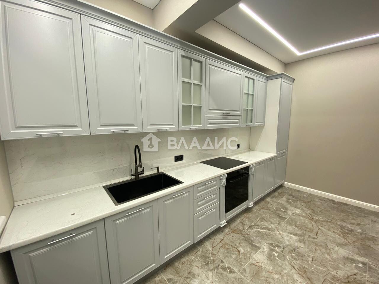 Квартира расположена на 12-м этаже 31-этажного дома, окна выходят на улицу. Жилая площадь составляет 54 кв. м, кухня — 18 кв. м. Квартира угловая, что обеспечивает хорошую освещённость и возможность проветривания.