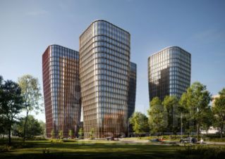 Стилистика здания - современная с запоминающимися индивидуальными архитектурными элементами. В отделке фасада используются высококачественные современные материалы: клинкерный кирпич, металл, витражное остекление, частичная облицовка цоколя гранитом - что придает дому индивидуальный образ, органично вписанного в окружающую среду.