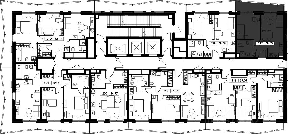 - Лобби по индивидуальному дизайн проекту от европейского бюро Вlank Architects: лаунж-зоны, ресепшен, колясочная, помещение для мытья лап животным после прогулки