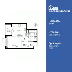 Продаётся 1-к квартира номер 16 общей площадью 37.8 кв.м. на 3-м этаже 25 этажного здания. Без отделки. Цена с учётом скидки.