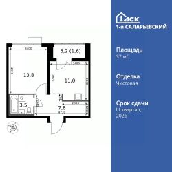 Продаётся 1-к квартира номер 575 общей площадью 37.7 кв.м. на 4-м этаже 24 этажного здания. Чистовая отделка. Цена с учётом скидки.