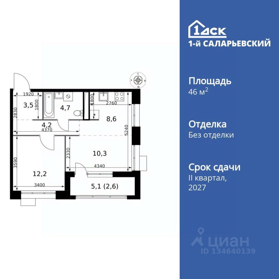 Продаётся 2-к квартира номер 718 общей площадью 46.1 кв.м. на 15-м этаже 25 этажного здания. Без отделки. Цена с учётом скидки.