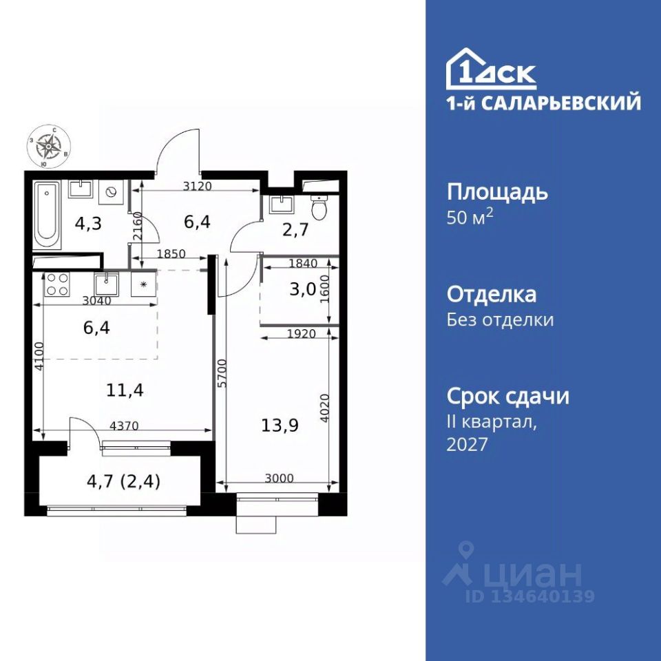 Продаётся 2-к квартира номер 182 общей площадью 50.5 кв.м. на 20-м этаже 21 этажного здания. Без отделки. Цена с учётом скидки.