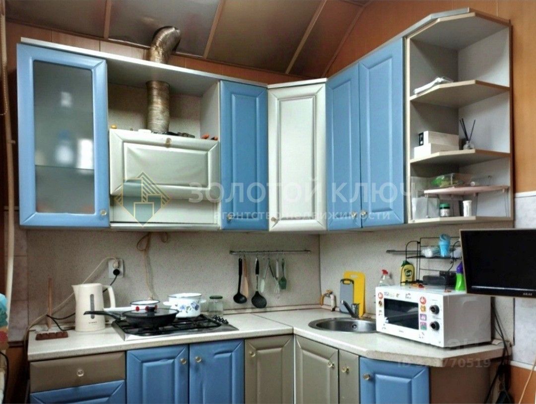 Одна комната проходная, две — изолированные. Выполнен косметический ремонт, санузел совмещенный, установлена кухонная мебель. Дом теплый, после капитального ремонта.