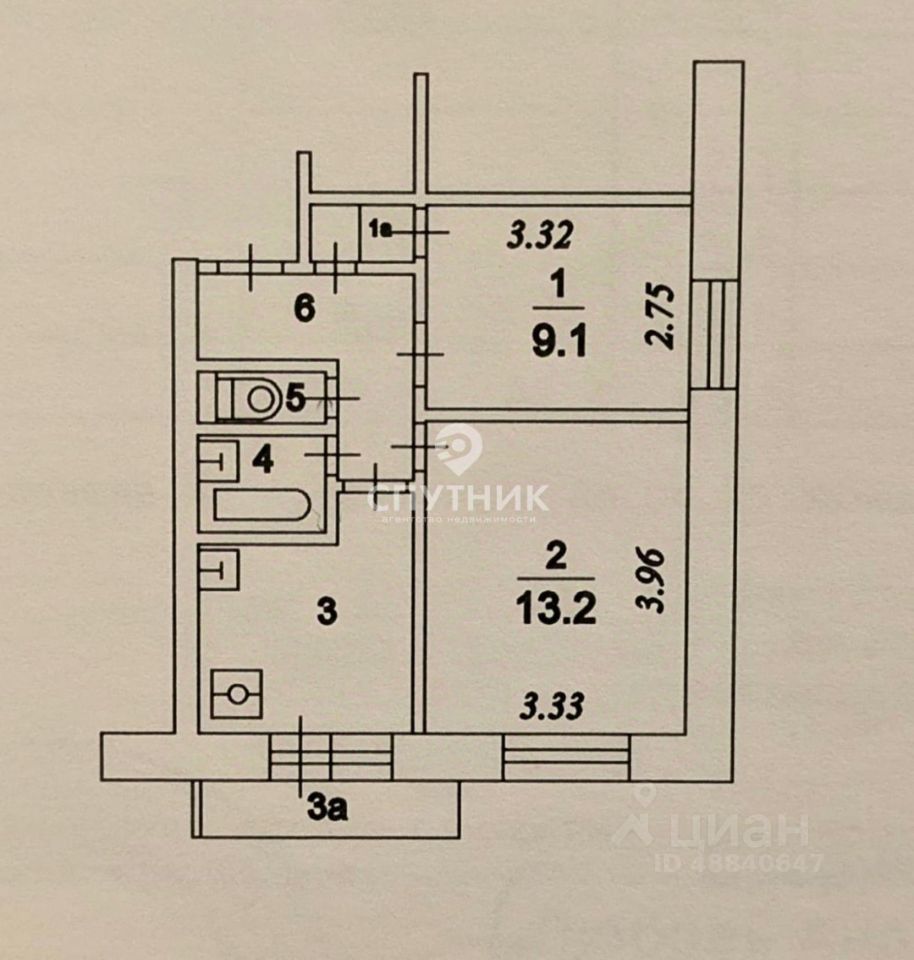 • Две изолированные комнаты 13,2 м, 9,1 м;