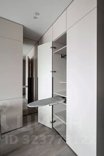 Встраиваемая гладильная доска в шкаф, розетки для утюга там же.