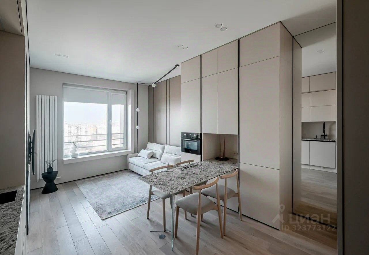 Дизайнерское интерьерное решение в квартире в современном стиле. Выполнен качественный ремонт из современных материалов. На полу инженерная доска дуб 4 мм., межкомнатные двери Union, высотой 2,4 метра, мастер-свет.
