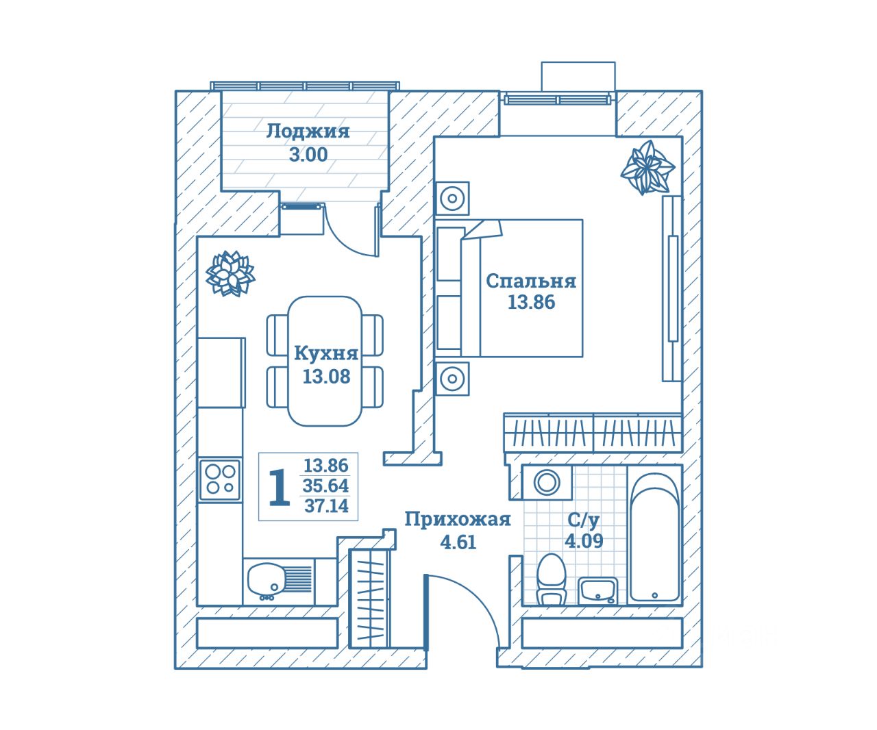 Жилая площадь13,9 м²
