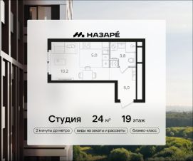 Предлагается квартира площадью 24.00 кв. м в новом современном квартале на востоке Москвы, прямо у станций метро и МЦК "Бульвар Рокоссовского". Квартира располагается в корпусе 2 на 19 этаже комплекса бизнес-класса "НАЗАРЕ'".