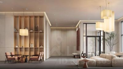 • дизайнерские лобби от бюро ABOVE ARCHITECTURE с панорамными окнами, интерьерами в теплой цветовой гамме и мягкой зоной ожидания располагаются в каждой башне;