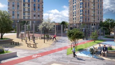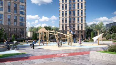 В благоустроенном дворе жилого комплекса установлены уличные спортивные комплексы в самых различных вариантах — от турников до больших многофункциональных игровых зон. Для родителей предусмотрены места для отдыха. На огороженной территории расположен собственный детский сад с детской площадкой.