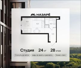 Предлагается квартира площадью 24.00 кв. м в новом современном квартале на востоке Москвы, прямо у станций метро и МЦК "Бульвар Рокоссовского". Квартира располагается в корпусе 3 на 28 этаже комплекса бизнес-класса "НАЗАРЕ'".