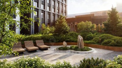 Во дворе комплекса "НАЗАРЕ'" будут места как для спокойного отдыха и работы, так и для игр и спорта. Здесь организованы игровые площадки для детей всех возврастов, места для стритбола и тенниса, а также зона с природным ландшафтом и коворкинг с экологичной деревянной мебелью.