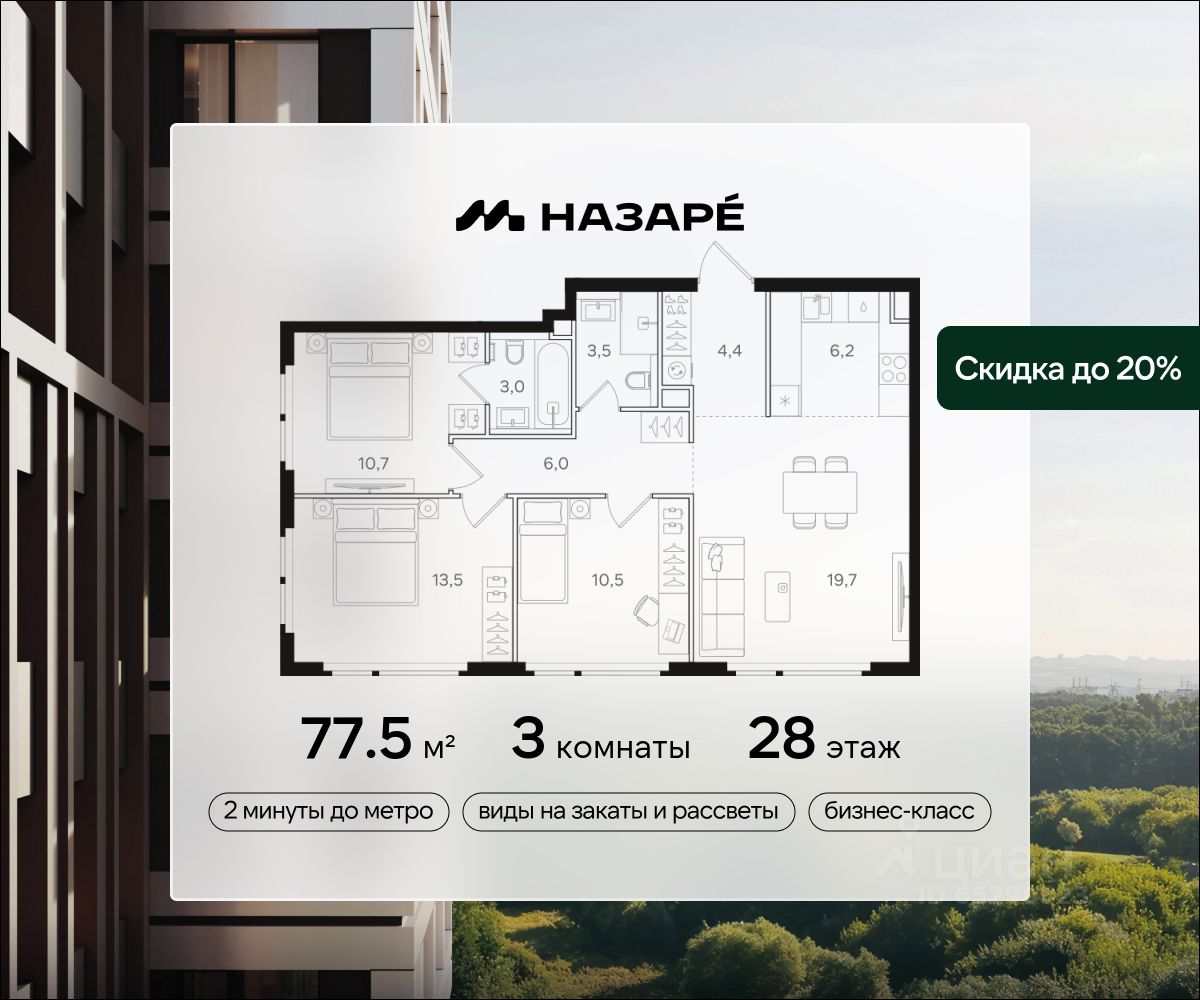 Стоимость указана с учетом скидки 10%, ваша выгода составит 3 547 950 рублей! Полная стоимость квартиры без скидки 35 479 500 рублей.