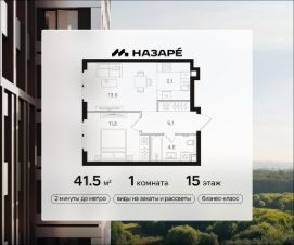 Продается 1-комнатная квартира в ЖК "НАЗАРЕ'"