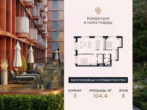 Резиденции в Парке Победы (Victory Park Residences) — это комплекс элитных семейных резиденций. Проект расположен в престижном районе Дорогомилово в одной минуте от Парка Победы, Поклонной горы и Кутузовского проспекта. Комплекс состоит из восьми элегантных корпусов, их облик разработан архитектурным бюро Сергея Скуратова. В отделке фасадов применяются натуральный камень доломит, стекло и медь. Богатая инфраструктура удовлетворит самые взыскательные запросы резидентов, к вашим услугам. Жемчужина проекта и первая в России торговая галерея "Виктори" (Victory Gallery) под управлением Гинза Проджект (Ginza Project). Это пространство, где каждая минута наполнена новыми открытиями: гранд спа с термальными источниками, салоны красоты, галерея кафе и ресторанов, выставочное пространство "территория искусств". Закрытый безопасный двор-сад "Виктори" (Victory Garden) полон возможностей наслаждаться природным пространством именно так, как вы любите. В тщательно проработанном ландшафте есть места и для уединённых размышлений, и для неспешных прогулок, и для весёлых игр с детьми, и для четвероногих друзей. В проекте представлены квартиры с панорамными окнами и высокими потолками от 3 до 3,85 метров. Квартиры с патио, пентхаусы с террасами на верхних этажах. Премиальная отделка в трех стилях на выбор.