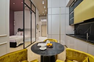 Редкая возможность приобрести квартиру с потолками 3,8 м и большим арочным окном - таких в доме всего несколько. Вид во внутренний двор создает атмосферу приватности и уюта, а высокие потолки и панорамное остекление наполняют пространство воздухом и светом.