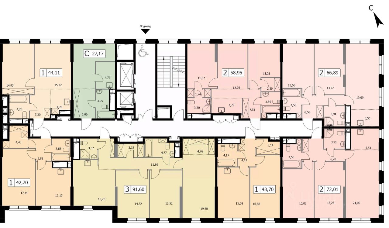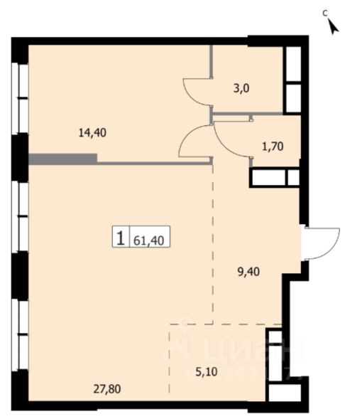 Просторная и светлая квартира площадью 61,4 кв. м. Продуманная планировка квартиры включает в себя отдельное расположение спальни от обеденно - гостиной зоны. Из окон гостиной открывается вид на Останкинскую башню, колесо обозрения и другие высотные объекты. Квартира с двойным светом и потолками 6 метров.