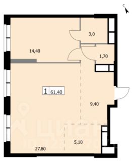 Квартира без отделки — ваша возможность создать идеальное пространство по индивидуальному проекту. Жилая площадь - 41,2 кв. м., кухня 5.6 кв. м., потолки 3,1 м.